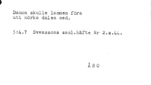 //// Damon skulle lammen föra //// uti mörka dalen ned. //// 5:4.? Svenssons saml.häfte Nr 2.S.44. //// < //// * //// ÅBO ////