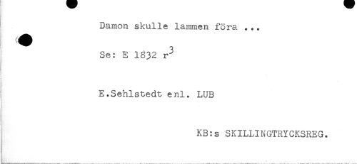 //// Damon skulle lammen föra ... //// Se: E 1832 r^ //// E.Sehlstedt enl. LUB //// KB:s SKILLINGTRYCKSREG. ////