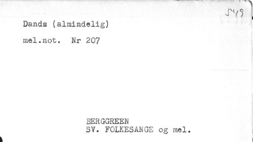 //// Dands (almindelig) //// mel.not. Nr 207 //// i //// t //// < //// i //// ...*.<...-.. . -. . < //// i //// L //// i //// ! //// i //// < //// BERGGREEN //// SV. FOLKESANGE og mel. ////