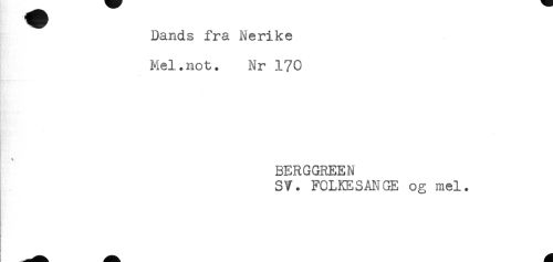 //// Dands fra Nerike //// Mel.not. Nr 170 //// . //// BERGGREEN //// SV. FOLKE SM GE og mel. ////