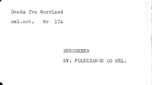 //// ! //// Dands fra Norrland //// < //// t //// ! //// mel.not. Nr 174 //// i- //// s //// i //// ! //// BERGGREEN //// i //// SV. FOLKESANGE OG MEL. //// i ////