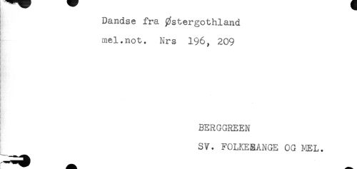 //// Dandse fra 0stergothland //// mel.not. Nrs 196, 209 //// * //// BERGGREEN //// t . //// SV. FOLKEBANGE OG MEL. ////