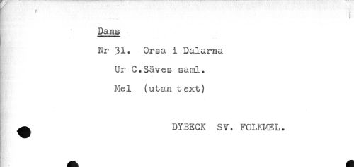 //// ^ Dans //// Nr 31. Orsa i Dalarna //// Ur C.Säves saml. //// Mel (utan text) //// ^ DYBECK SV. FOLKMEL. ////