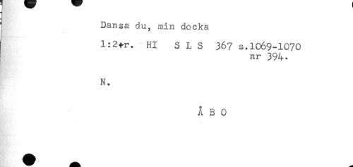 //// Dansa du, min docka //// * //// l:2+-r. Hl S L S 367 s.1069-1070 //// nr 394. //// N. //// ÅBO ////
