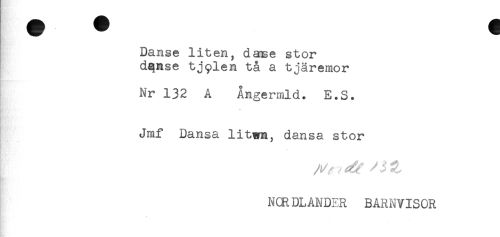//// * * * //// Danse liten, dase stor //// dqnse tjplen tå a tjäremor //// Nr 132 A Ångermld. E.S. //// Jmf Dansa litwn, dansa stor //// NCRDLANOER BARNVISOR ////