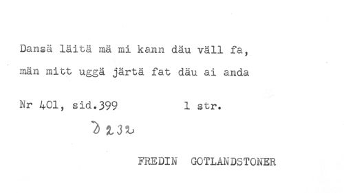 //// Dansa läitä mä mi kann däu väll fa, //// män mitt uggä järtä fat däu ai anda //// Nr 401, sid.399 1 str. //// FREDIN GOTLANDSTONER ////