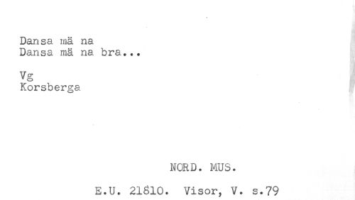 //// Dansa mä na //// Dansa mä na bra... //// Vg //// Korsherga. //// NORD. MUS. //// E.U. 21610. Visor, V. s.79 ////