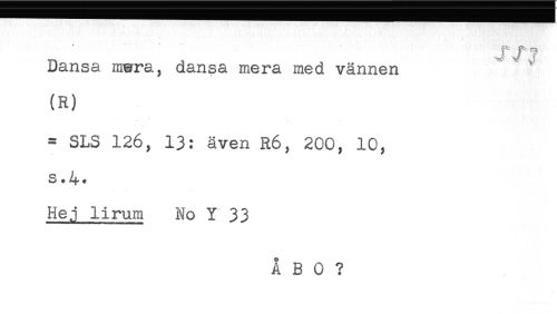 //// Dansa mwra, dansa mera med vännen //// (R) //// = SLS 126, 13: även R6, 200, 10, //// s .4. //// Hej lirum No Y 33 ////