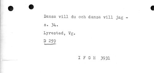 //// Dansa vill du och dansa vill jag - //// s. 34. //// Lyrestad, Vg. //// D 259 //// IFGH 3931 ////