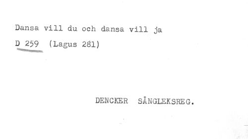 //// Dansa vill du och dansa vill ja //// D 259 (Lagus 281) //// DENCKER SÅNGLEKSREG. ////