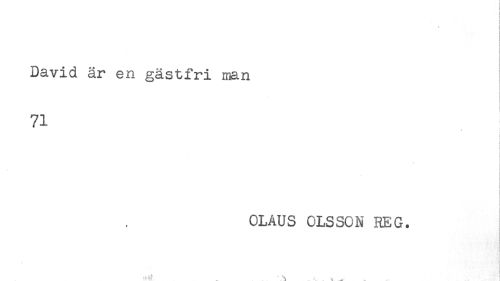 //// < //// i //// David är en gästfri man //// 71 //// { //// . //// I //// OLAUS OLSSON REG. //// * ////