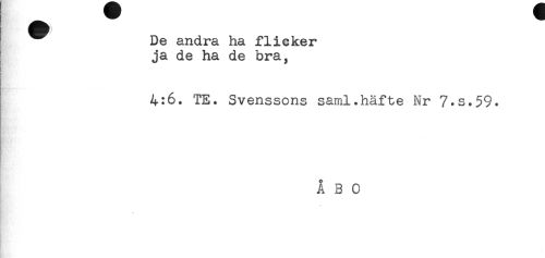 //// ^^ De andra ha flicker //// ja de ha de bra, //// 4:6. TE. Svenssons saml.häfte Nr 7.S.59. //// ÅBO ////
