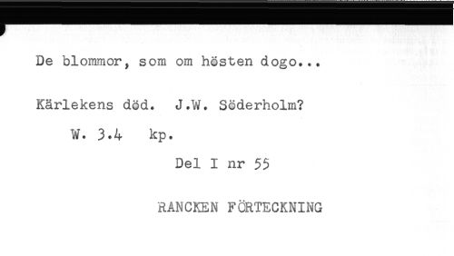 //// De blommor, som om hösten dogo... //// Kärlekens död. J.W. Söderholm? //// W. 3*4 kp. //// Del I nr 55 //// RANCKEN FÖRTECKNING ////