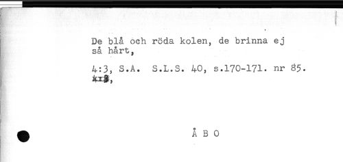//// HKt' —. -- - * //// i De blå och röda kolen, de brinna ej //// så hårt, //// 4:3, S.A. S.L.S. 40, s.170-171. nr 8$. //// I , //// [t //// M* ////