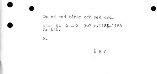 //// De ej med tårar och med ord. //// # 4:4 Hl S L S 367 s.ll3a-H36 //// nr 456. //// ! //// < //// N. //// ÅBO //// t * //// vy" ////