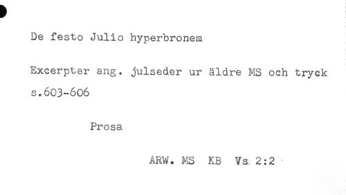 //// De festo Julio hyperbronem //// Excerpter ang. julseder ur äldre MS och tryck //// s.603-606 //// Prosa //// ARW. MS KB Vs 2:2 ////