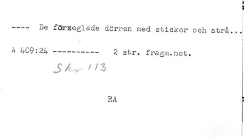 //// ! //// ---- De färseglade dörren med stickor och strå...! //// A 409:24 ----- 2 str. fragm.not. //// JA,- "3 //// - //// RA : ////