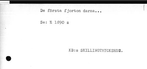 //// De första fjorton darna... ' //// Se: E 1890 z //// * //// KB:s SKILLINGTRYCKSREG. //// - //// - ////