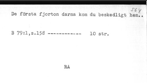 //// De första fjorton darna kom du beskedligt hem.. //// ! //// - //// B 79:1,s.158---- 10 str. //// j //// RA ////