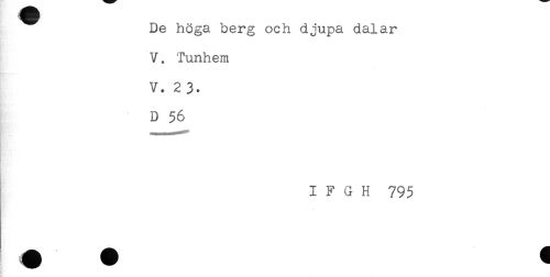 //// De höga berg och djupa dalar //// V. Tunhem //// * //// V. 2 3. //// D 56 //// IFGH 795 ////