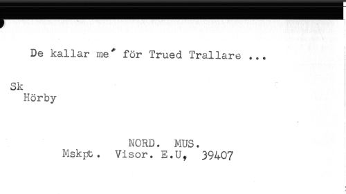 //// ) //// De kallar me' för Trued Trallare ... //// Sk //// Hörby //// i //// i //// ! //// j //// NORD. MUS. //// Mskpt. Visor. E.U, 3940? ////