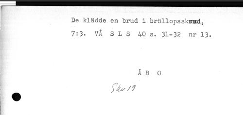 //// & //// i //// } //// De klädde en brud i bröllopssknnd; //// 7:3. VÅ S L S 40 s. 31-32 nr 13. //// j //// < ////