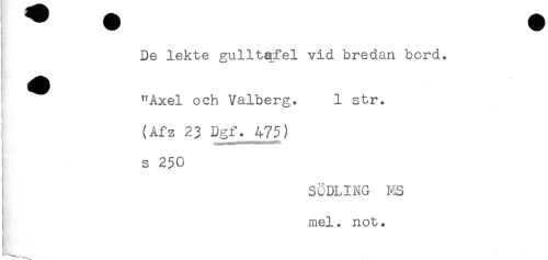 //// , De lekte gulltafel vid bredan bord. //// ! //// < "Axel och Valberg. 1 str. //// } (Afz 23 Dgf. 475) //// s 250 //// SODLING MS //// mel. not. ////