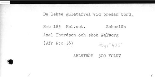 //// -- //// De lekte gulétafvel vid bredan bord, //// * * //// - //// N:o 165 Mel.not. Bohuslän //// Axel Thordson och skön Wql&org //// (Jfr N:o 36) ^ //// AHLSTRÖM 300 FOLKV //// r r ////