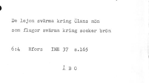 //// De lejon svärma kring Ölans mön //// som flugor svärma kring socker brön //// 6:4 Hfors I NE 37 s.165 //// t //// ! ////