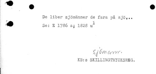 //// ) //// ! //// ! De liber sjömänner de fara på sjö?.* //// ! ^ Se: E 1786 a; 1828 u^* //// ) //// i //// KB:s SKILLINGTRYCKSREG. //// W .,. ////