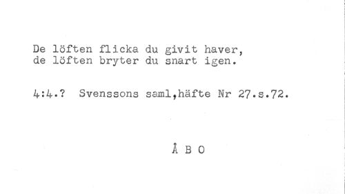 //// De löften flicka du givit haver, //// de löften bryter du snart igen. //// i //// t //// < //// 4:4-? Svenssons samlyhäfte Nr 27.S.72. //// ÅBO //// ( //// < ////