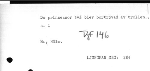 //// ii //// De prinsessor två blev bortrövad av trollen., //// s. 1 //// Mo, Häls. //// ^ LJUNGMAN GBG: 285 ////