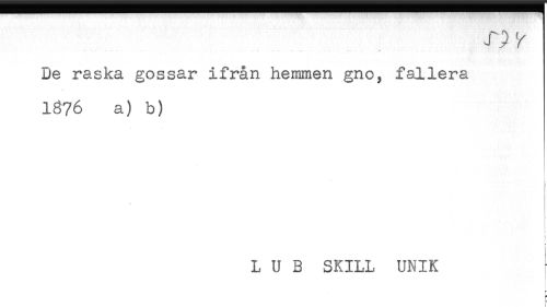 //// * //// De raska gossar ifrån hemmen gno, fallera //// 1876 a) b) //// < //// t //// i //// L U B SKILL UNIK //// < //// i //// t //// ^ //// [ //// ) ////