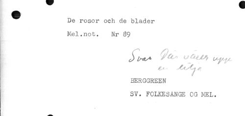 //// ^^ De rosor och de blader //// Mel.not. Nr 89 //// 7 //// ! BERGGREEN //// SV. FOLKESANGE OG MEL. ////