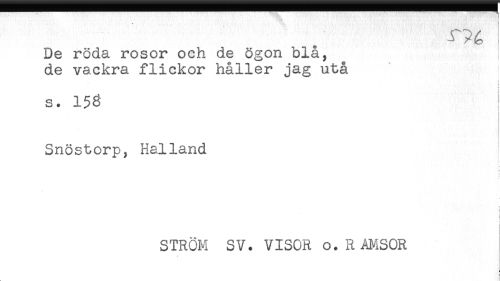 //// De röda rosor och de ögon blå, //// de vackra flickor håller jag utå ' //// : //// ) //// s. 15g //// Snöstorp, Halland //// i //// ! //// i //// } //// STRÖM SV. VISOR o. RAMSOR ////