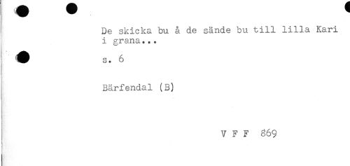 //// De skicka bu å de sände bu till lilla Kari //// i grana... //// Bärfendal (B) //// V F F 369 //// ! //// t ////