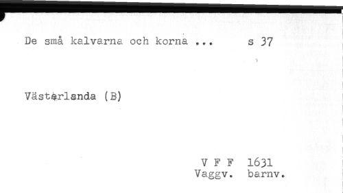 //// De små kalvarna och korna ... s 37 //// y //// * t //// Väst^rlsnda (B) //// i //// VFF 1631 ' //// Vaggv. bamv. //// < ////