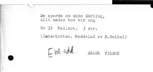 //// } De sporde om skön Särling, //// allt medan hon var ung //// Nr 35 Mel.not. 3 str. //// (Öwterbotten. Meddelad av M.Heikel) //// ^ ^^ - BRAGE VISBOK ////