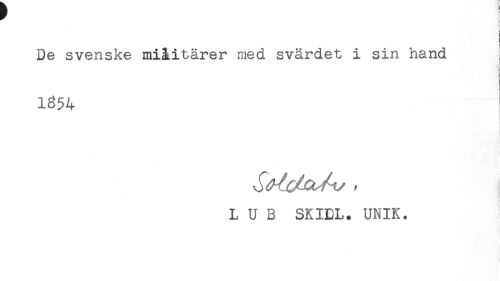 //// De svenske miUtärer med svärdet i sin hand //// v //// ] //// 1854 //// < //// L U B SKIDL. UNIK. ////