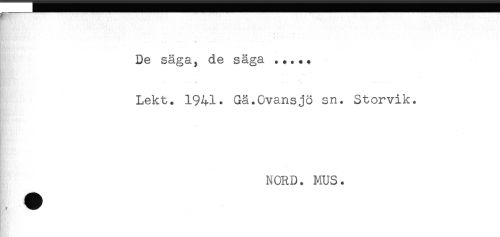 //// -,' t t ' //// De säga, de säga ..... //// . //// ..... //// Lekt. 1941. Gä.Ovansjö sn. Storvik. //// - //// - //// - //// NORD. MUS. ////