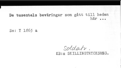//// De tusentals beväringar som gått till heden //// här ... //// Se: Y 1665 a //// KB:s SKILLINGTRYCKSREG. //// H //// t= ////