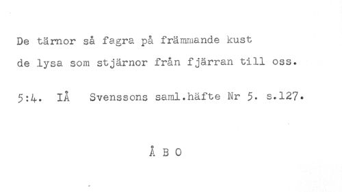 //// De tärnor så fagra på främmande kust //// de lysa som stjärnor från fjärran till oss. //// 5:4. IA Svenssons saml.häfte Nr 5. s*12?. ////