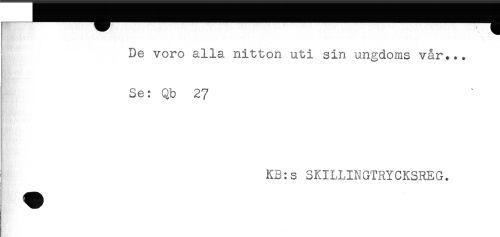 //// t.:-;';'.'.. ^^^^^ //// De voro alla nitton uti sin ungdoms vår... //// Se: Qb 27 //// KS:s SKILLINGTRYCKSREG, //// i //// ) ////