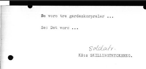 //// ^^ a //// Be voro tre gardeskorpraler ... //// Se: Det voro ... //// KB:s SKILLINGTRYCKSREG. //// L/, / * ////