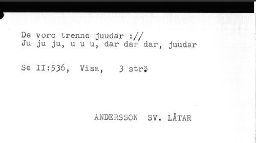 //// * I //// De voro trenne juudar : //// //Ju ju ju, u u u, dar dar dar, juudar //// i //// Se 11:536, Visa, 3 strö //// ANDERSSON SV. LÅTAR //// ; //// t //// ) //// i ////