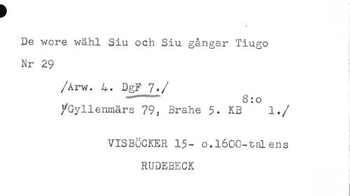 //// ) //// i //// De wore wähl Siu och Siu gångar Tiugo //// Nr 29 //// /Arw. 4. DgF 7. //// //Gyllenmärs 79, Brahe 5. KB 1. //// /i //// t //// < //// VISBÖCKER 15- o.l60C-telens //// ! //// RUDEBECK ////