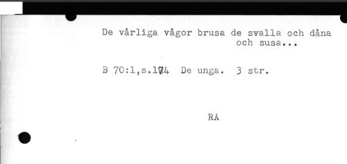 //// De vårliga vågor brusa de svalla och dåna //// och susa... //// B 70:1;S.1%4 De unga. 3 str. //// RA ////