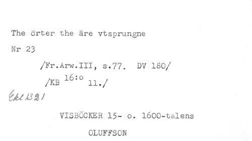 //// The örter the äre vtsprungne //// Nr 23 //// /Fr.Arw.III, s.77. DV 180 //// //KB ^^ //// VISBÖCKER 1$- o. 1600-talens //// 0LUFFS0N ////