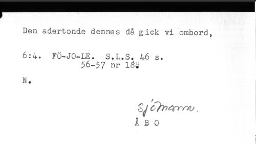 //// Den adertonde dennes då gick vi ombord, //// 6:4. FÖ-JO-LE. S.L.S. 46 s. //// 56-57 nr Igg //// N. //// i //// - * ////