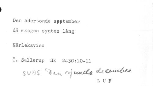 //// Den adertonde spptember //// då skogen syntes lång //// Kärleksvisa //// i //// Ö. Sallerup Sk 2430:10-11 //// * //// L U F ////